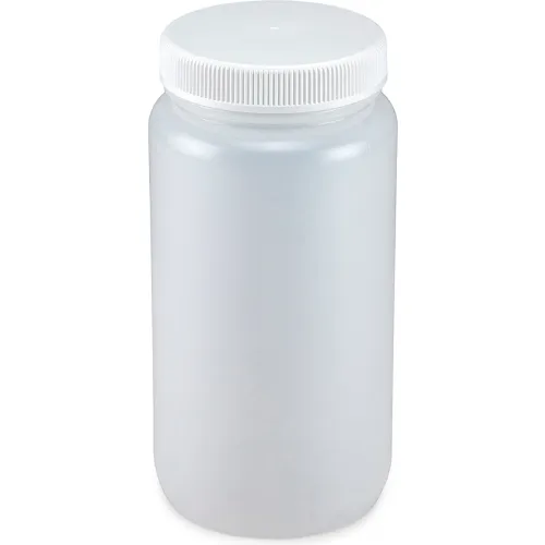 Bottle, Wide Mouth, LDPE Bottle, Attached Polypropylene Screw Cap, 2 Liters (0.5 Gallons)
