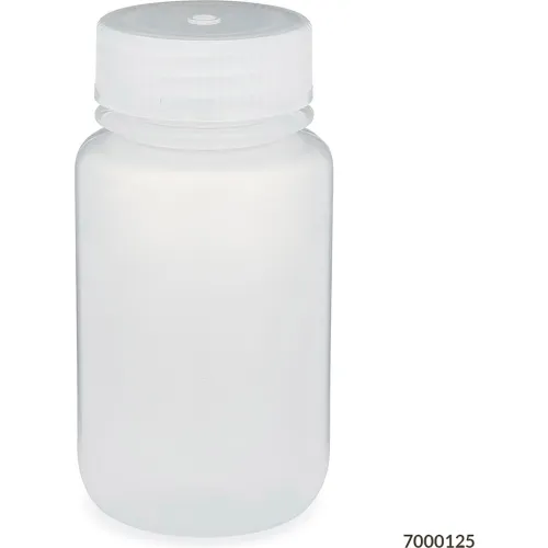 Bottle, Wide Mouth, Polypropylene, Attached Polypropylene Screw Cap, 125mL, 12/Pack