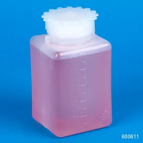 Bottle with Screwcap, Wide Mouth, Square, Graduated, PE (Cap Polypropylene), 250mL, 50/Pack