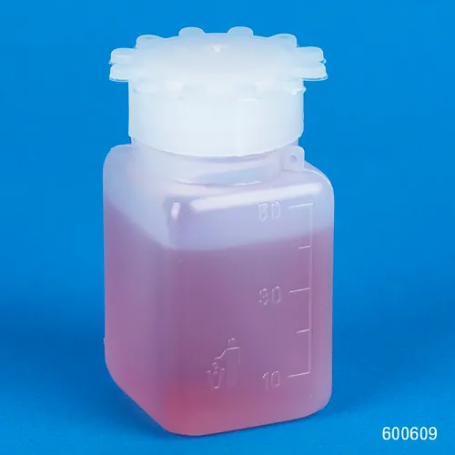 Bottle with Screwcap, Wide Mouth, Square, Graduated, PE (Cap Polypropylene), 50mL, 100/Pack