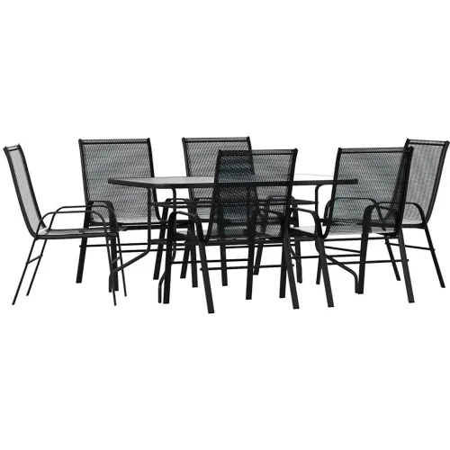 Flash Furniture Brazos 7 Piece Outdoor Patio Table w/ Umbrella Hole & Stack Chairs , Black