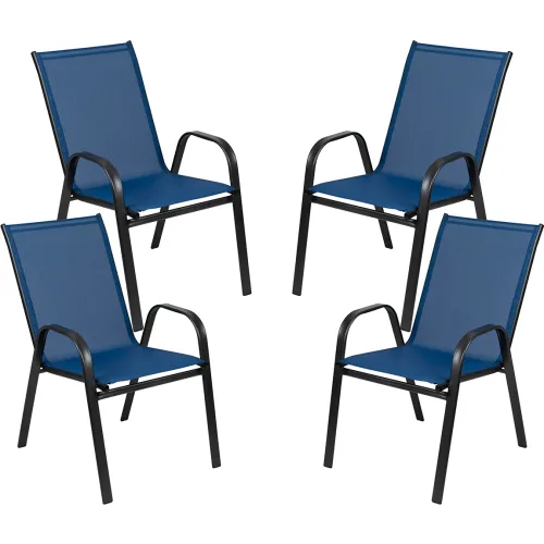 Flash Furniture Brazos Series Navy Outdoor Stack Chair with Flex Comfort Material, 4 Pack