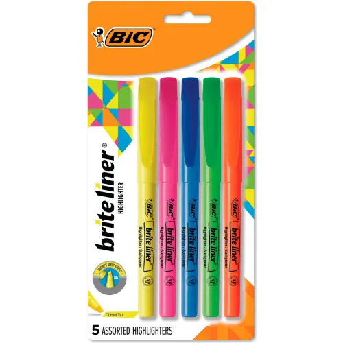 Bic® Brite Liner Highlighter with Pocket Clip, Chisel Tip, Assorted Ink, 5/Set