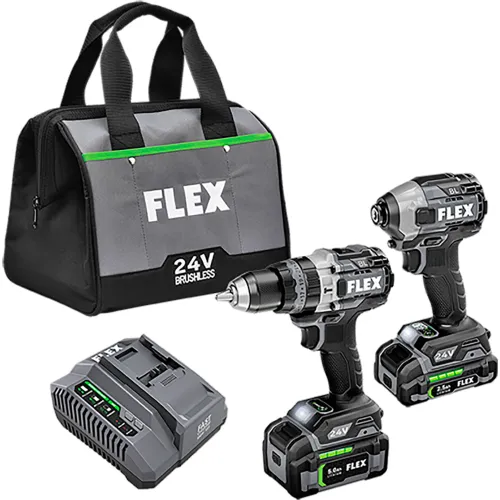 Flex Brushless 2 Tool Combo Kit w/ Hammer Drill, Turbo Mode & Impact Driver & Quick Eject, 24V