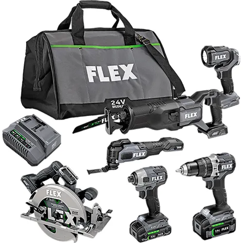 Flex Brushless 6 Tool Combo Kit w/ Hammer Drill, Impact Driver, Circular Saw & Work Light, 24V