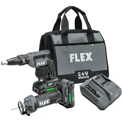 FLEX Brushless Drywall Screw Gun & Cut Out Tool Combo Kit with 2.5Ah Lithium-Ion Batteries, 24V