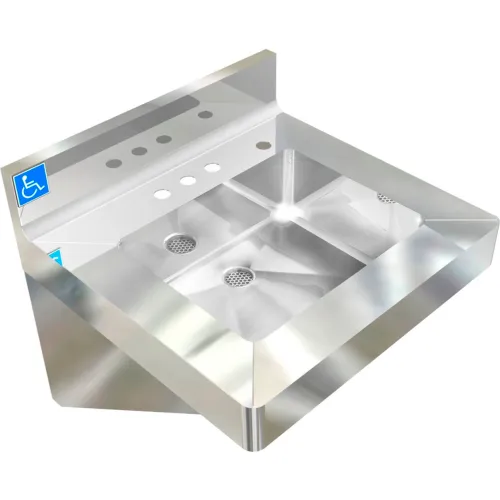 BSM Inc. ADA SS Hand Sink, 1 Station Body Only, Wall Mount, 20"L x 19"W x 5-1/2"D Sink