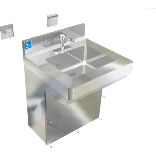 BSM Inc. ADA SS Hand Sink, 1 Station with Metering Faucet, Wall Mount, 20"L x 19"W x 5"D Sink