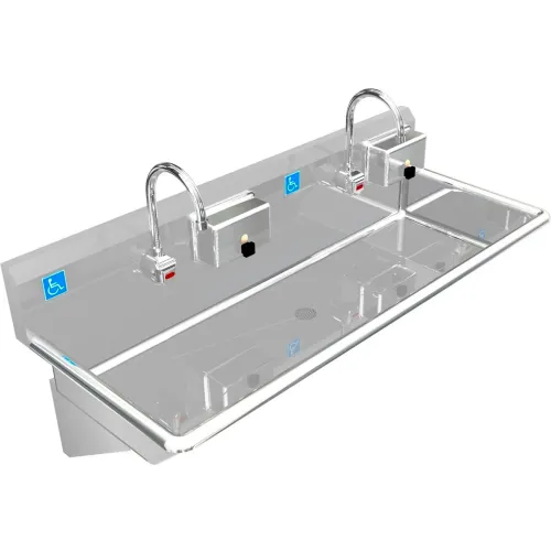 BSM Inc. ADA SS Sink, 2 Station with Electronic Faucet & 2 Soap Dispensers, 48"L x 20"W x 6"D Sink