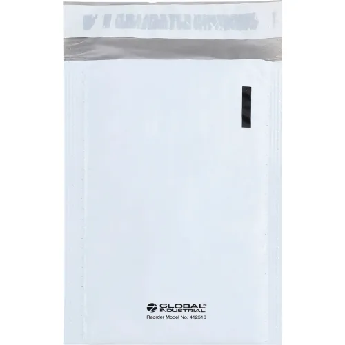 Global Industrial Bubble Lined Poly Mailers, #000, 4"W x 8"L, White, 500/Pack