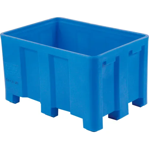 Dandux Forkliftable Plastic Skid Bulk Container, Double Wall, 38"L x 26"W x 16-1/2"H,800 lb Cap,Blue
