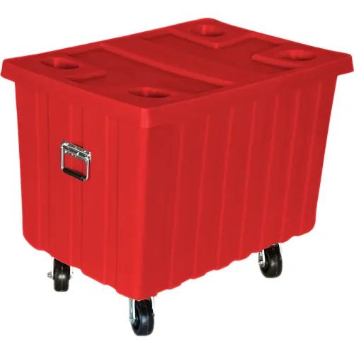 Bulk Shipping Container with Lid & Casters, 41"L x 28-1/4"W x 32-1/2"H, 650 lb. Cap, Red, Poly