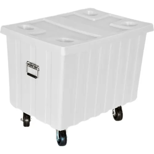 Bulk Shipping Container with Lid & Casters, 41"L x 28-1/4"W x 32-1/2"H, 650 lb Cap, White, Poly