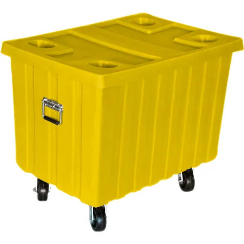 Bulk Shipping Container with Lid & Casters, 41"L x 28-1/4"W x 32-1/2"H, 650 lb Cap,Yellow, Poly
