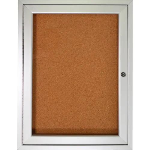 Ghent Enclosed Bulletin Board, 1 Door, 36"W x 36"H, Natural Cork/Silver Frame