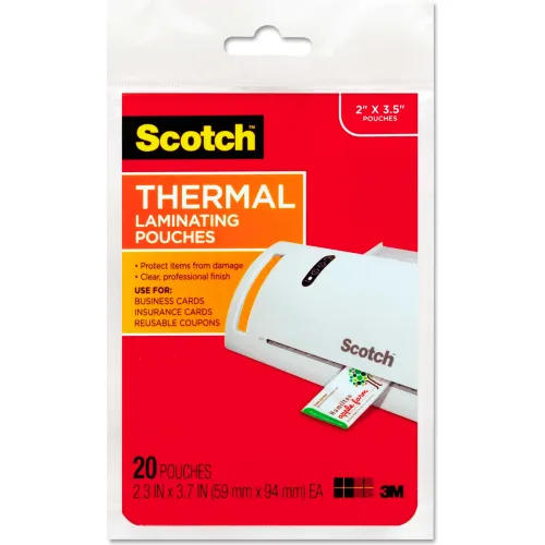 Scotch® Business Card Size Thermal Laminating Pouches, 5 mil, 3 3/4 x 2 3/8, 20/Pack