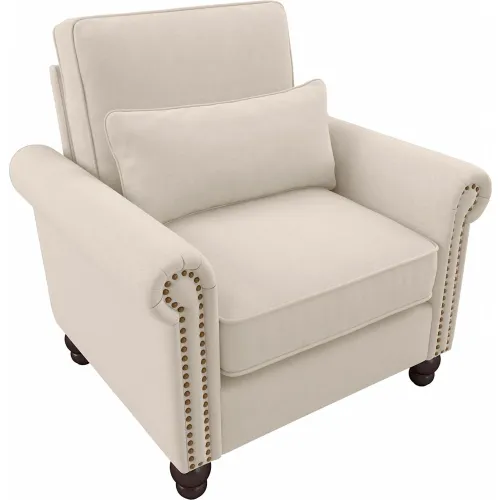 Bush Business Furniture Coventry Accent Chair w/ Nailheads & Arm, Cream