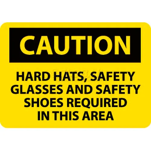 NMC C160PB OSHA Sign, Caution Hard Hats Safety Glasses & Safety Shoes Required, 10" X 14", Yw/Blk