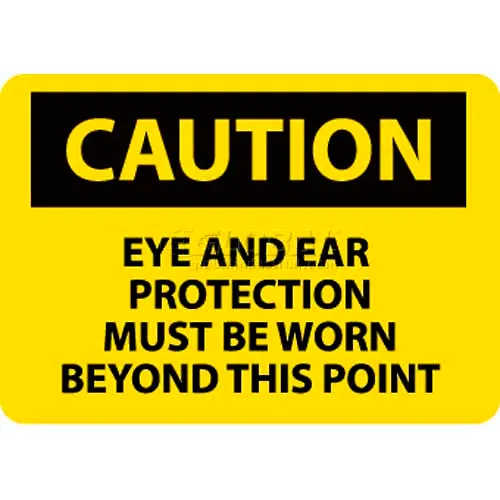 NMC C480RB OSHA Sign, Caution Eye & Ear Protection Must Be Worn Beyond This Point, 10" X 14", Yw/Blk