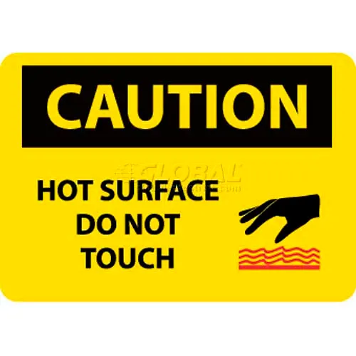 NMC C525PB OSHA Sign, Caution Hot Surface Do Not Touch, 10" X 14", Yellow/Black
