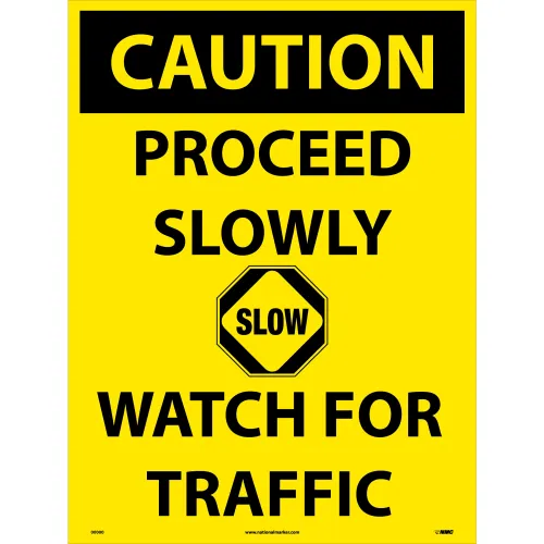 NMC C748E Snow Safety Sign, CAUTION Proceed Slowly Watch For Traffic, 24" x 18", Yellow/Black