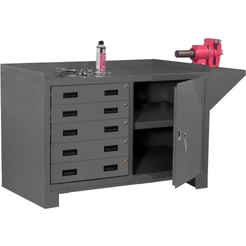 Durham Mfg. 5 Drawer Workbench, Steel Square Edge, 60-1/8"W x 24-1/4"D, Gray