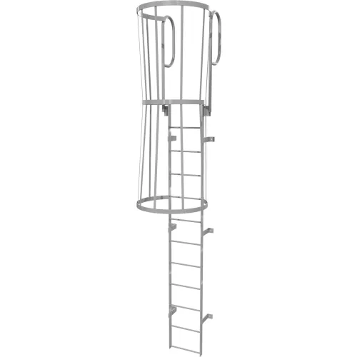 12 Step Steel Caged Walk Through Fixed Access Ladder, Gray - WLFC1212