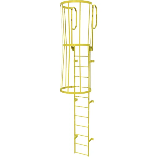 12 Step Steel Caged Walk Through Fixed Access Ladder, Yellow - WLFC1212-Y
