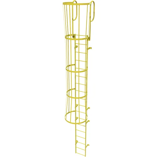 18 Step Steel Caged Walk Through Fixed Access Ladder, Yellow - WLFC1218-Y