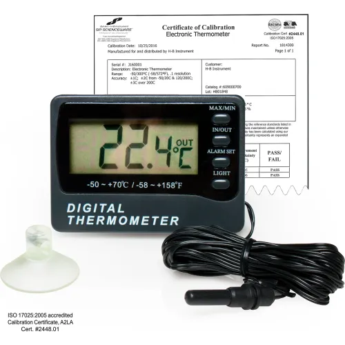 H-B DURAC Calibrated Dual Zone Elec Thermometer , -50/70C (-58/158F) Ext, -10/50C (14/122F) Int