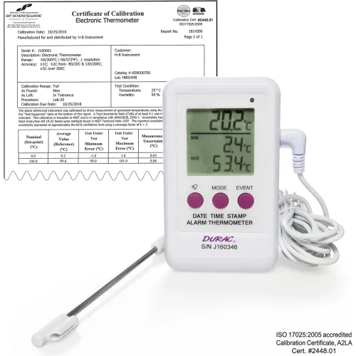 H-B DURAC Calibrated Electronic Thermometer Event Logger SS Probe, -50/200C (-58/392F), 65 x 110mm