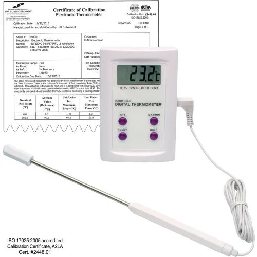 H-B DURAC Calibrated Electronic Thermometer with SS Probe, -50/200C (-58/392F), 63 x 97mm