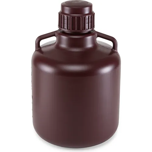 Carboy, Round with Handles, Amber HDPE, Amber Polypropylene Screwcap, 10 Liter, Molded Graduation