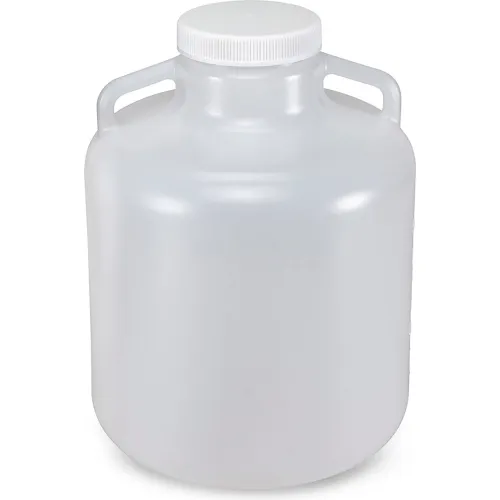Carboy, Round with Handles, Wide Mouth, LDPE, White PP Screwcap, 10 Liter, Molded Graduations