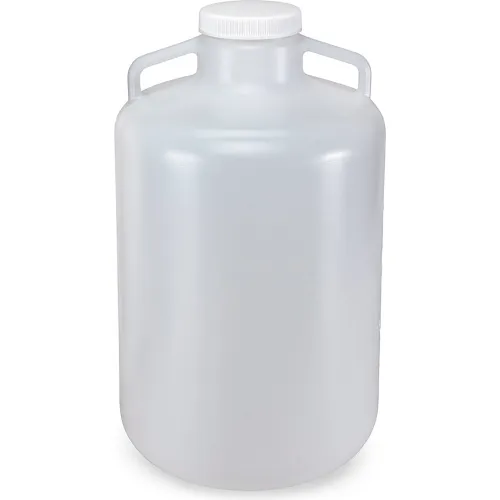 Carboy, Round with Handles, Wide Mouth, LDPE, White PP Screwcap, 20 Liter, Molded Graduations