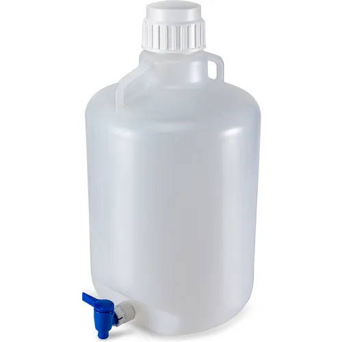 Carboy, Round with Spigot and Handles, LDPE, White Polypropylene Screwcap, 20 Liter