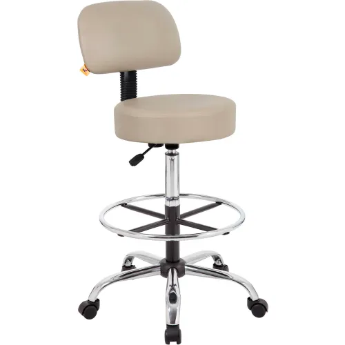 Boss Medical Stool with Backrest and Footring - Vinyl - Beige