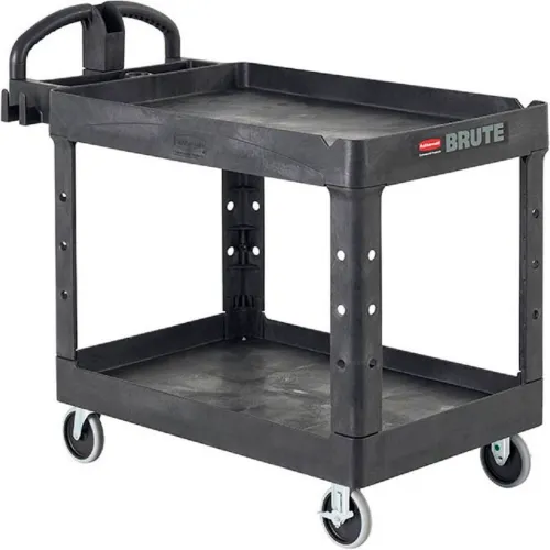 Rubbermaid® Brute Heavy Duty Ergo Handle Utility Cart, Lipped Shelf, Small, Black