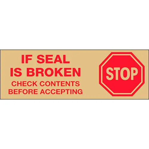 Tape Logic® Carton Sealing Tape, Stop If Seal Is Broken, 3" x 110 yds., Red/Tan - Pkg Qty 24