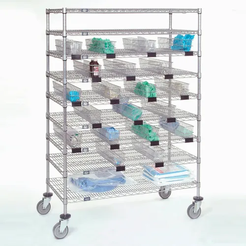 Nexel® Chrome Catheter Cart with Baskets, 5" Swivel Casters, 48"W x 24"L x 68"H