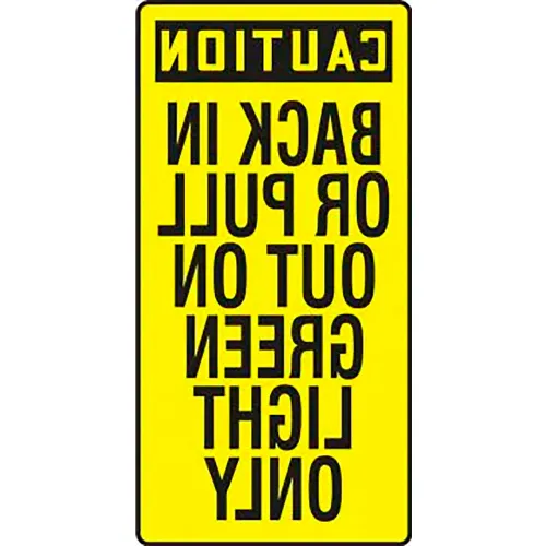 AccuformNMC Caution Back In Or Pull Out On Green Light Sign, Mirror Img., Plastic, 24" x 12", Yellow