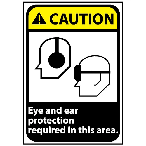 Caution Sign 14x10 Rigid Plastic - Eye and Ear Protection Required