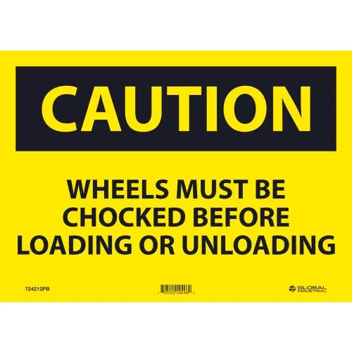 Global Industrial™ Caution Wheels Must Be Chocked Before, 10x14, Pressure Sensitive Vinyl