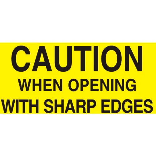 "Caution When Opening w/ Sharp Edges" Receiving Labels, 5"L x 3"W, Bright Yellow, Roll of 500