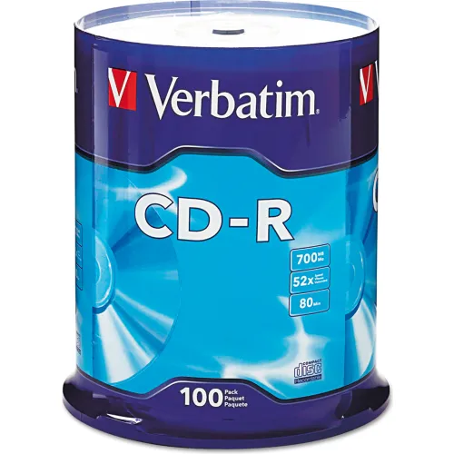 Verbatim® CD-R Recordable Disc, 52x Speed, 700 MB/80 min, Spindle, Silver, 100/Pack