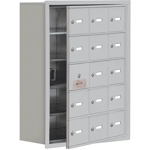 Salsbury 5-Tier 15 Door Cell Locker w/ Recessed Keyed Locks, 24"W x 8-3/4"D x 31"H, Gray, Assembled