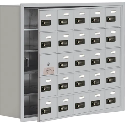 Salsbury 5-Tier 25 Door Cell Locker w/ Recessed Combo Locks, 37"W x 8-3/4"D x 31"H, Gray, Assembled