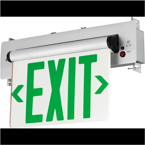 Hubbell CELR2GNE LED Edge-Lit Exit, Double-Face, Green Letters, Recessed Mount, w/ Battery Back-up