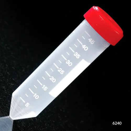 Centrifuge Tube, 50mL, Attached Red Screw Cap, PP , Printed Graduations, Sterile, 500/Pack
