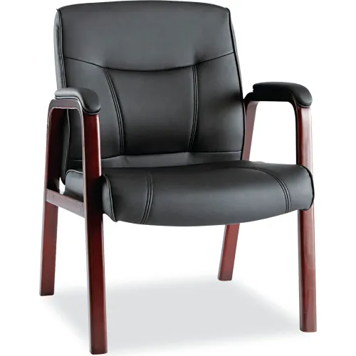 Alera® Madaris Series Bonded Leather Guest Chair w/Wood Trim Legs, Black w/Mahogany Base